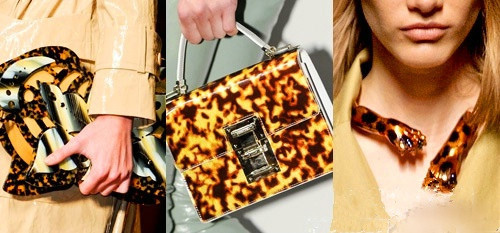 2014的春夏,豹紋和蛇紋的流行將由玳瑁取代。玳瑁以其精致的動(dòng)物花紋注入女式配飾無(wú)法抗拒的優(yōu)雅。它用在每一個(gè)女式配飾上,我們都可以體會(huì)一種精心打扮的感覺(jué)。